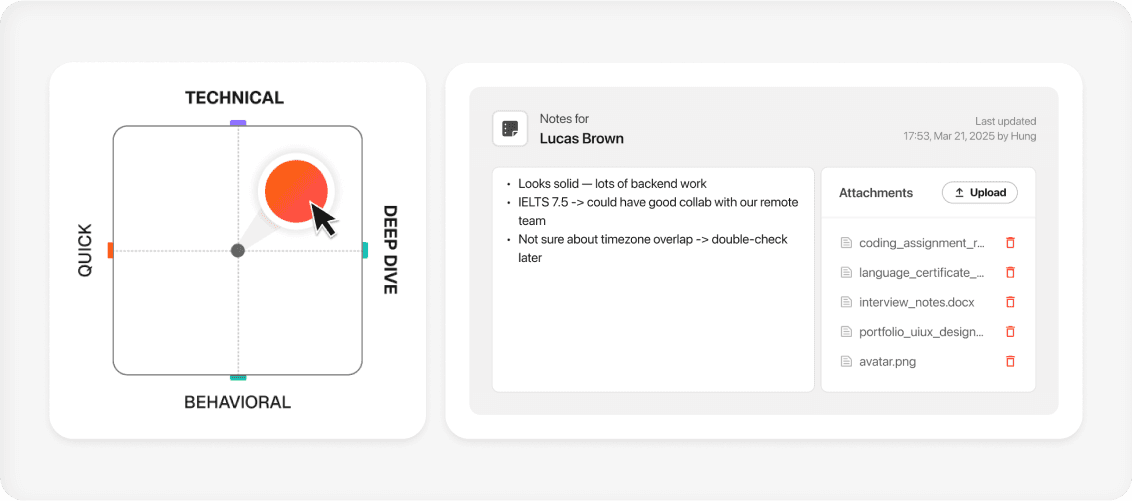 Track hiring activity, candidate status, note, meetings — all in one clear, real-time view